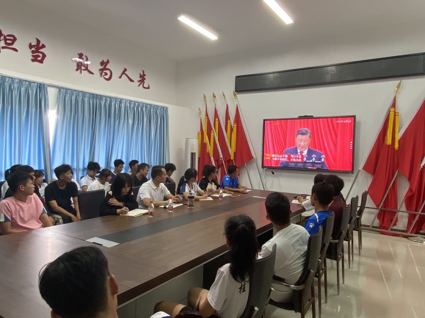 活动第一项为视频学习。与会人员一同学习和观看了习近平总书记在中国共产党第二十次全国代表大会上的报告,习近平总书记的报告让与会人员深感使命光荣、责任重大。随后,全体人员观看了,中共二十大代表、两届冬奥会冠军武大靖16日在二十大“党代表通道”接受采访时的讲话,通过该段讲话鼓励在场党员和入党积极分子在未来为校争光,追求卓越,为体育强国建设贡献自己的力量。