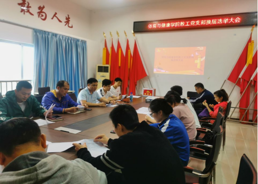 5月19日中午,体育与健康学院于彰善楼四楼会议室召开教工党支部换届选举大会,教工党支部全体成员参加了本次换届大会,大会由学院党总支组织委员叶悦龙主持。