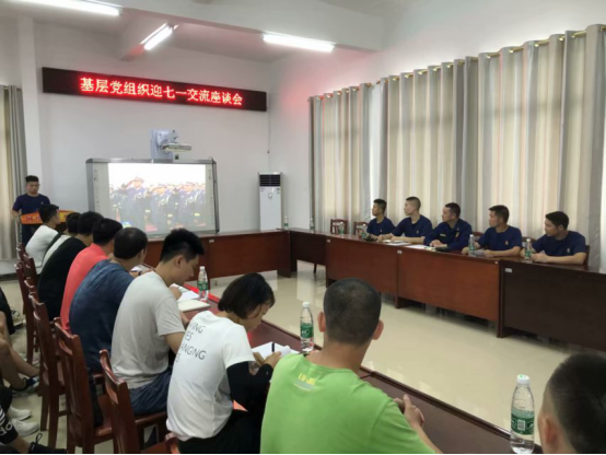 活动伊始,体育与健康学院师生与雁山消防大队代表于雁山区消防大队7楼会议室召开“基层党组织迎七一”主题座谈会。双方就如何共同促进校园及校园周边消防安全建设进行了交流。会中,党总支刘波书记对双方党建与业务工作进一步沟通提出了构想,消防大队唐导员也对师生提出的各类消防问题进行了详细和深刻的解答。