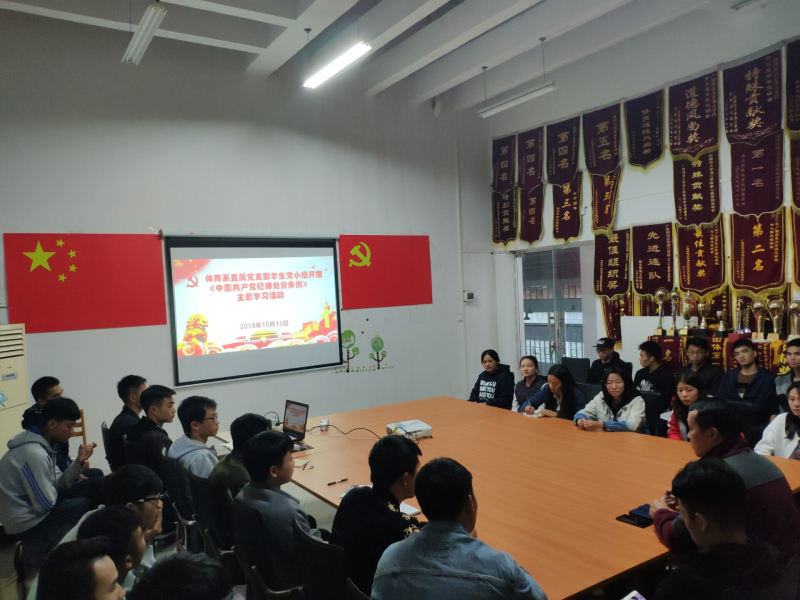 10月15日晚,体育系直属党支部学生党小组在体育系会议室开展了学习中共中央修订后印发的《中国共产党纪律处分条例》(以下简称为《条例》)。直属党支部学生党小组学生党员24人参加了学习活动。