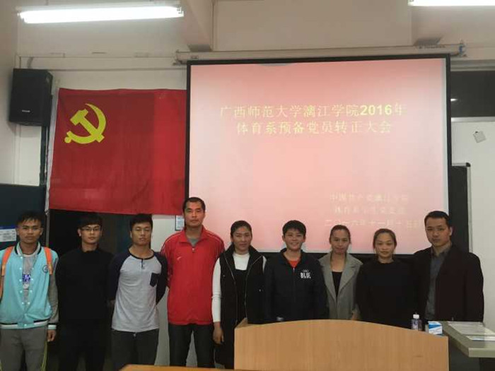 经党组织一年以上的培养教育,徐海进、陈林琳两位预备党员预备期满。本次大会就我系2013级体育教育专业五班徐海进、陈林琳两位预备党员转正事宜进行了讨论。大会一开始,先是由主持人介绍了本次大会流程,接着徐海进、陈林琳两位预备党员依次上台宣读转正申请书,总结汇报预备期一年中在思想、学习、工作及生活上的表现情况及收获感悟,表达了自己转为中共正式党员的意志与决心,言辞恳切,态度认真。随后由到场的嘉宾进行了民主评议,陈海斌老师充分肯定了两位同志在一年里的表现以及指出了需要加强的地方。最后由到场的党员进行不记名投票,经过投票表决,徐海进、陈林琳两位同志的转正申请全票通过,按期转为中共正式党员。