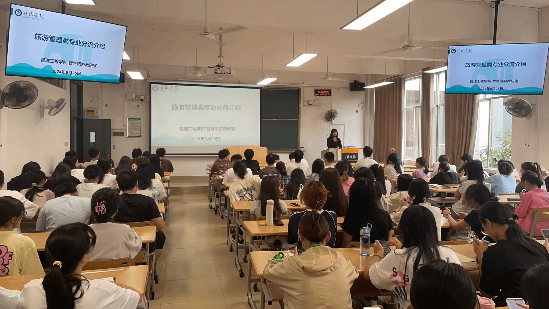 10月15日,2024级旅游管理类专业分流宣讲活动在2501教室顺利举行。宣讲活动由康养旅游教研室刘小玲老师主持,康养旅游教研室刘莹莹老师、经竣超老师和全体2024级旅游管理类学生参加。