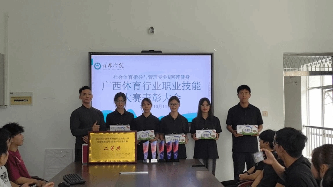现场社会体育指导与管理教研室教师向所有获奖的个人和团队表示最热烈的祝贺。合作企业阿莲健身代表也对获奖学子表示了祝贺,并充分肯定了桂林学院的人才培养质量。
