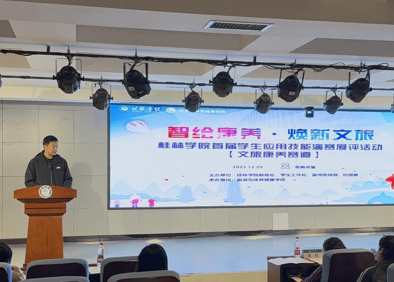 12月29日上午,桂林学院首届学生应用技能演赛展评活动之“文旅康养赛道:智绘康养·焕新文旅”赛项决赛于至善讲堂举行。本次活动由教务处、学生工作处、宣传统战部、校团委联合主办,旅游与体育健康学院承办,其目的在于深化产教融合,推动康养旅游产业的创新发展。