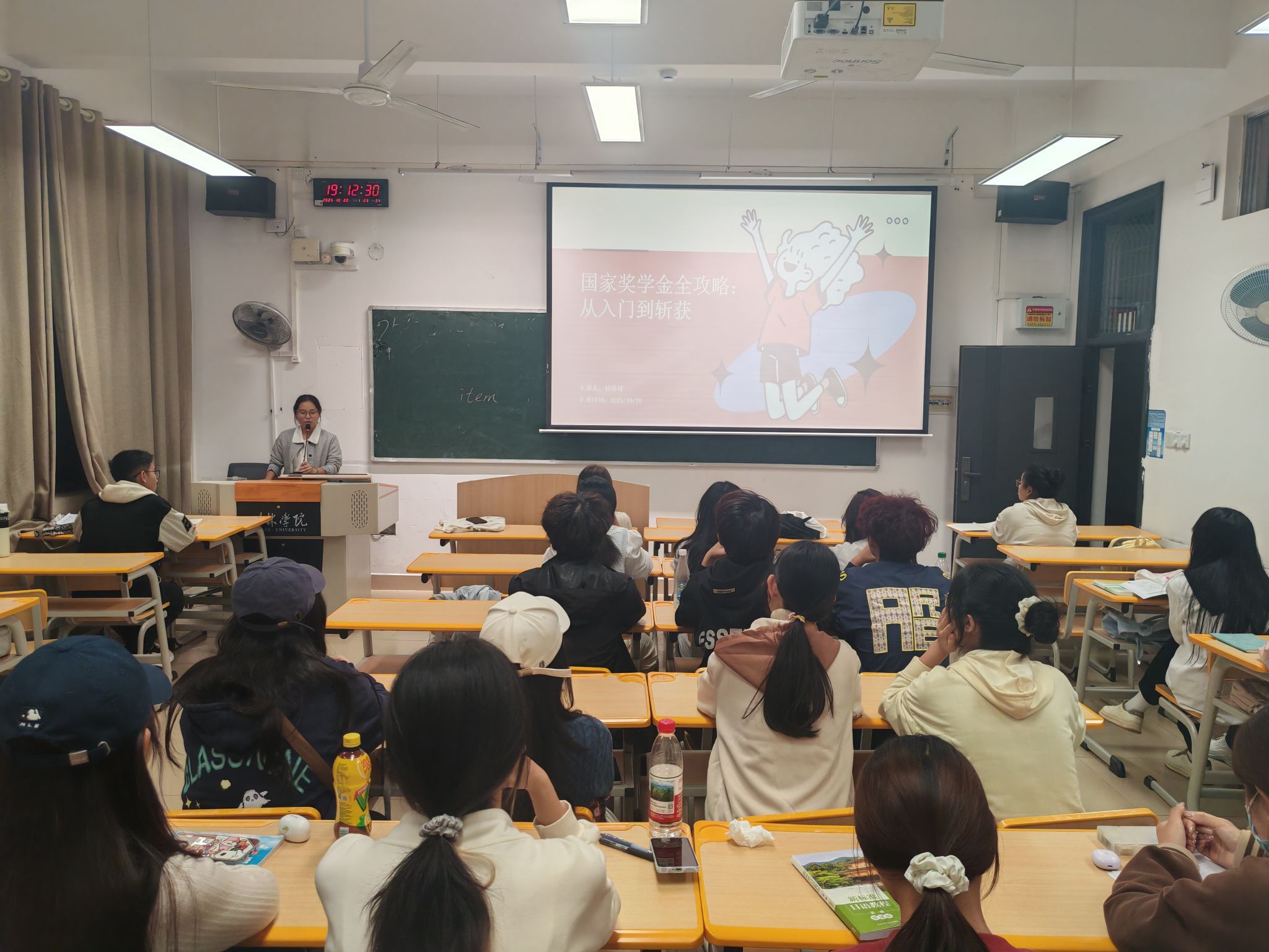10月20日晚,旅游与体育健康学院在至善楼2307教室成功举办了国家奖学金获得者经验分享会。本次分享会特邀学院国家奖学金获得者2022级旅游管理专业王馨、2023级旅游管理专业屈梦可同学进行经验分享,2025级旅游管理专业全体新生到场聆听学习。