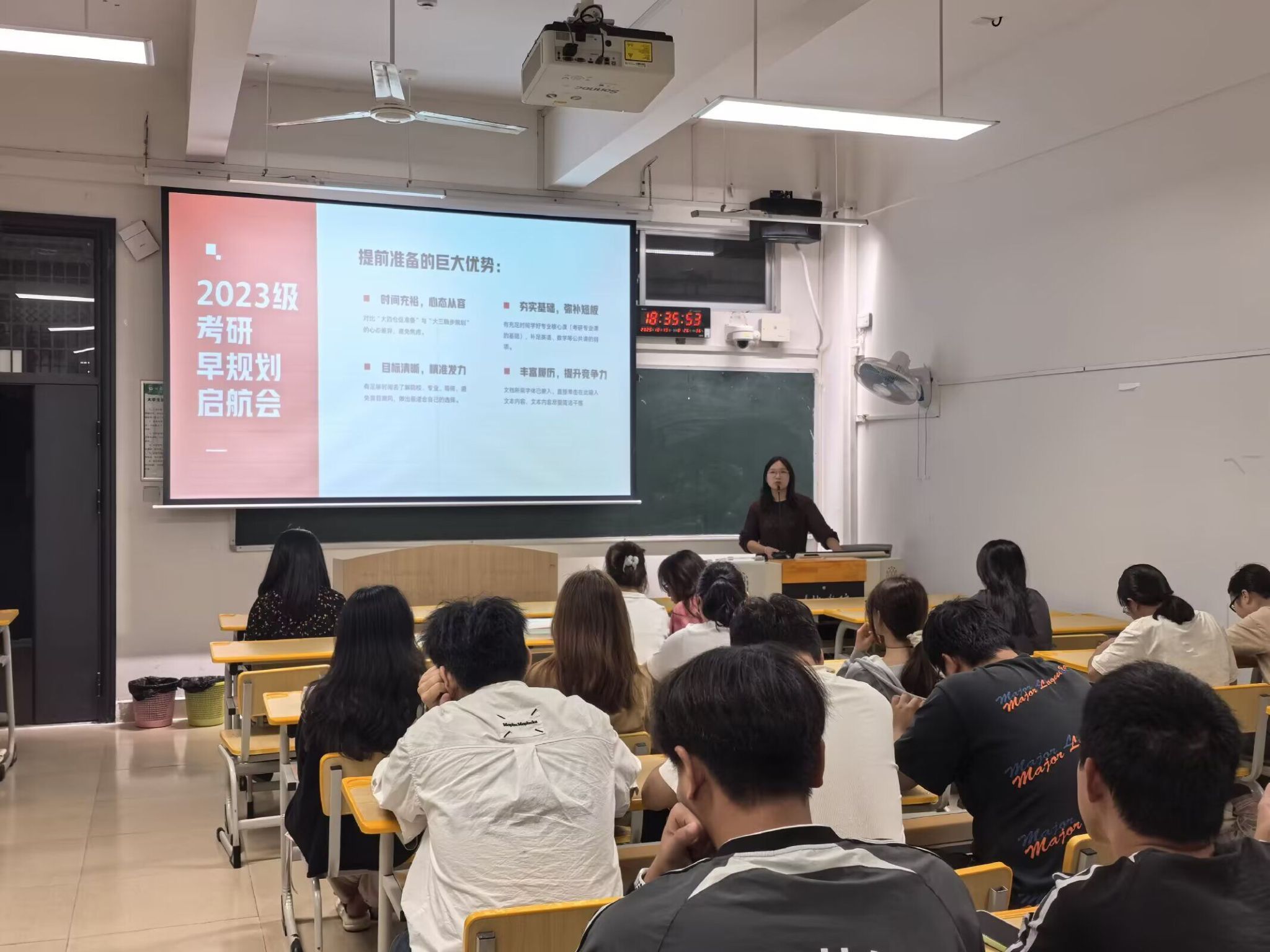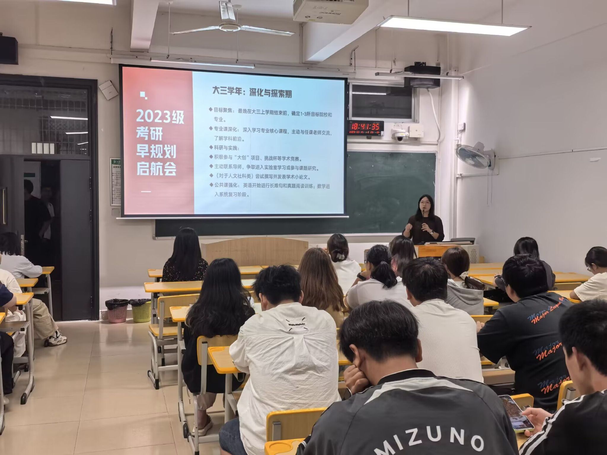 10月19日晚,我院面向2023级全体学生举行了“‘研’途筑梦,步履不停——2023级考研早规划启航会”。本次活动由各专业辅导员主讲,旨在引导同学们将考研的“长期战役”转化为一场有步骤、有策略的“规划行动”。