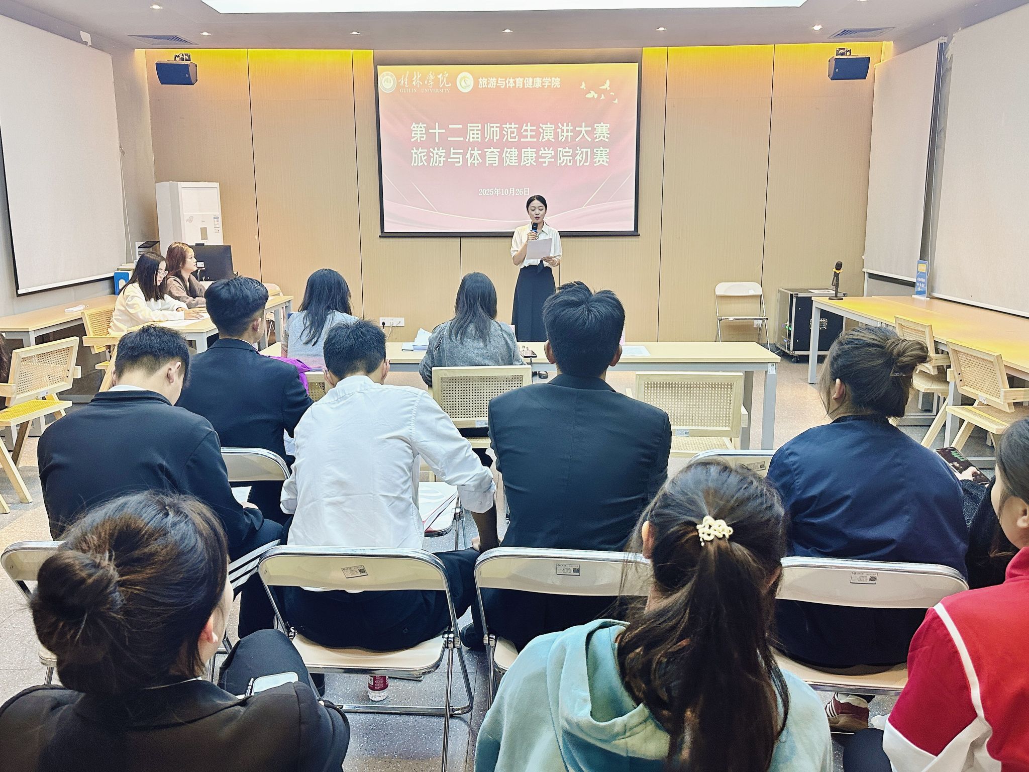10月26日18:00,旅游与体育健康学院在“一站式”学生社区辅导员工作室举办第十二届师范生演讲大赛院初赛。学院党总支副书记、辅导员王海玲、唐雪雁担任评委,全院师范类专业22名参赛选手参与本次赛事。