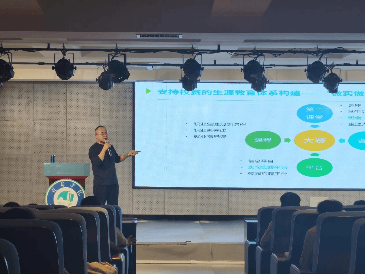 培训会上,党延伟老师首先强调了职业生涯规划的重要性。他指出,在当前复杂多变的就业市场中,一个清晰、可行的职业生涯规划对于大学生来说至关重要。这不仅能够帮助同学们明确自己的职业目标和发展方向,还能有效提升他们的自我认知能力和市场竞争力。
