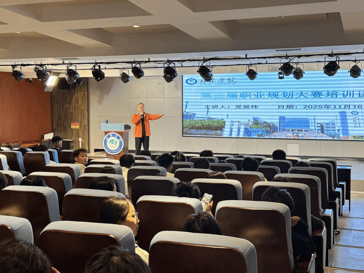 11月16日晚,旅游与体育健康学院于至善讲堂开展“第三届全国大学生职业规划大赛”培训讲座,学院2025级专升本学生参加了本次培训活动,本次培训的主讲人为辅导员党延伟老师。