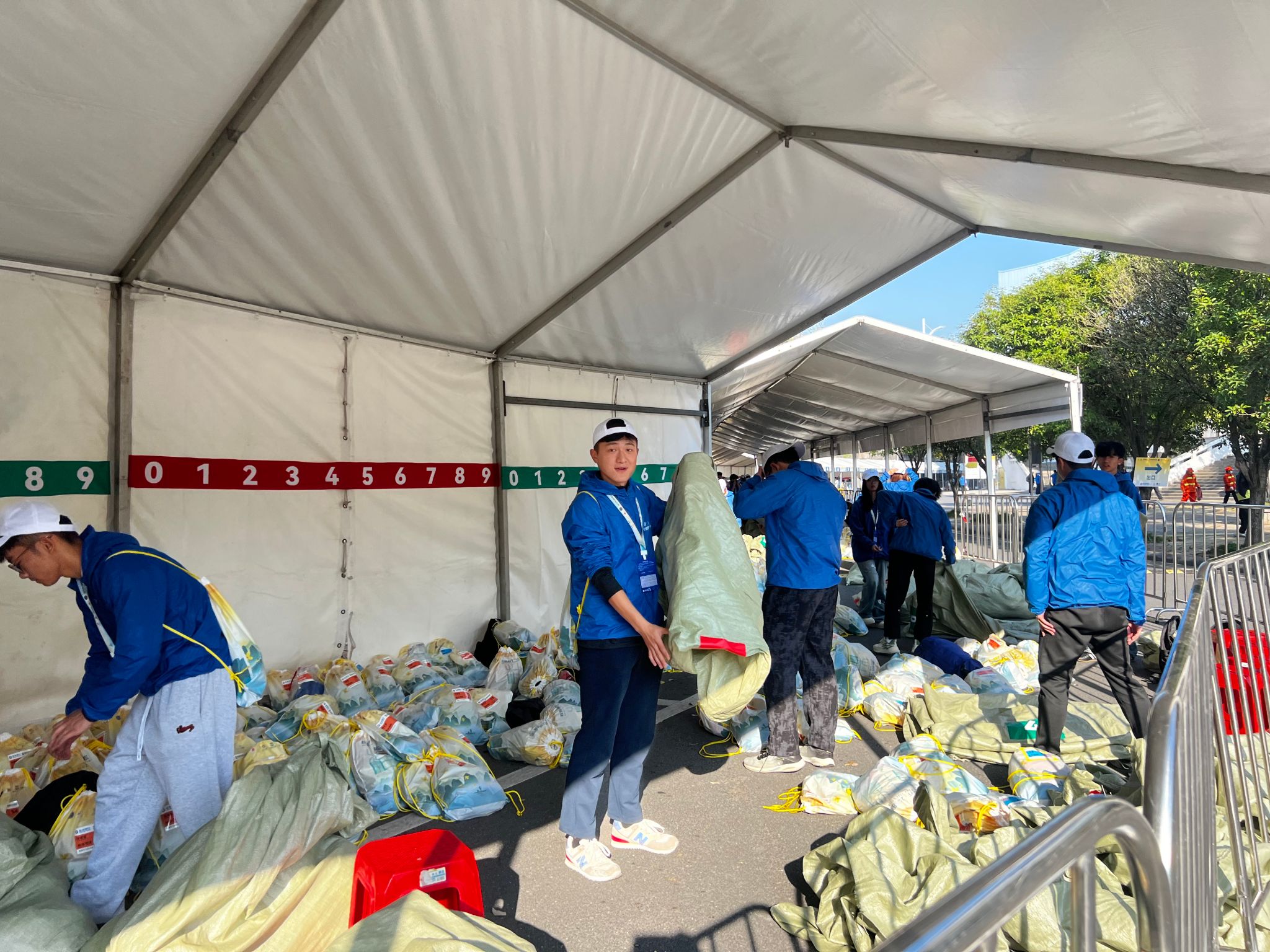 在补给区域,志愿者们分工明确、高效协作,耐心引导选手前往休息区,细致解答关于赛后恢复的咨询,用专业且贴心的服务为选手们缓解疲劳、补充能量。存取包区域的志愿者则严格核对选手号码布与存包信息,妥善存放、快速调取个人物品,耐心回应选手疑问,全程保持热情周到的服务态度,为选手营造便捷舒心的参赛环境。