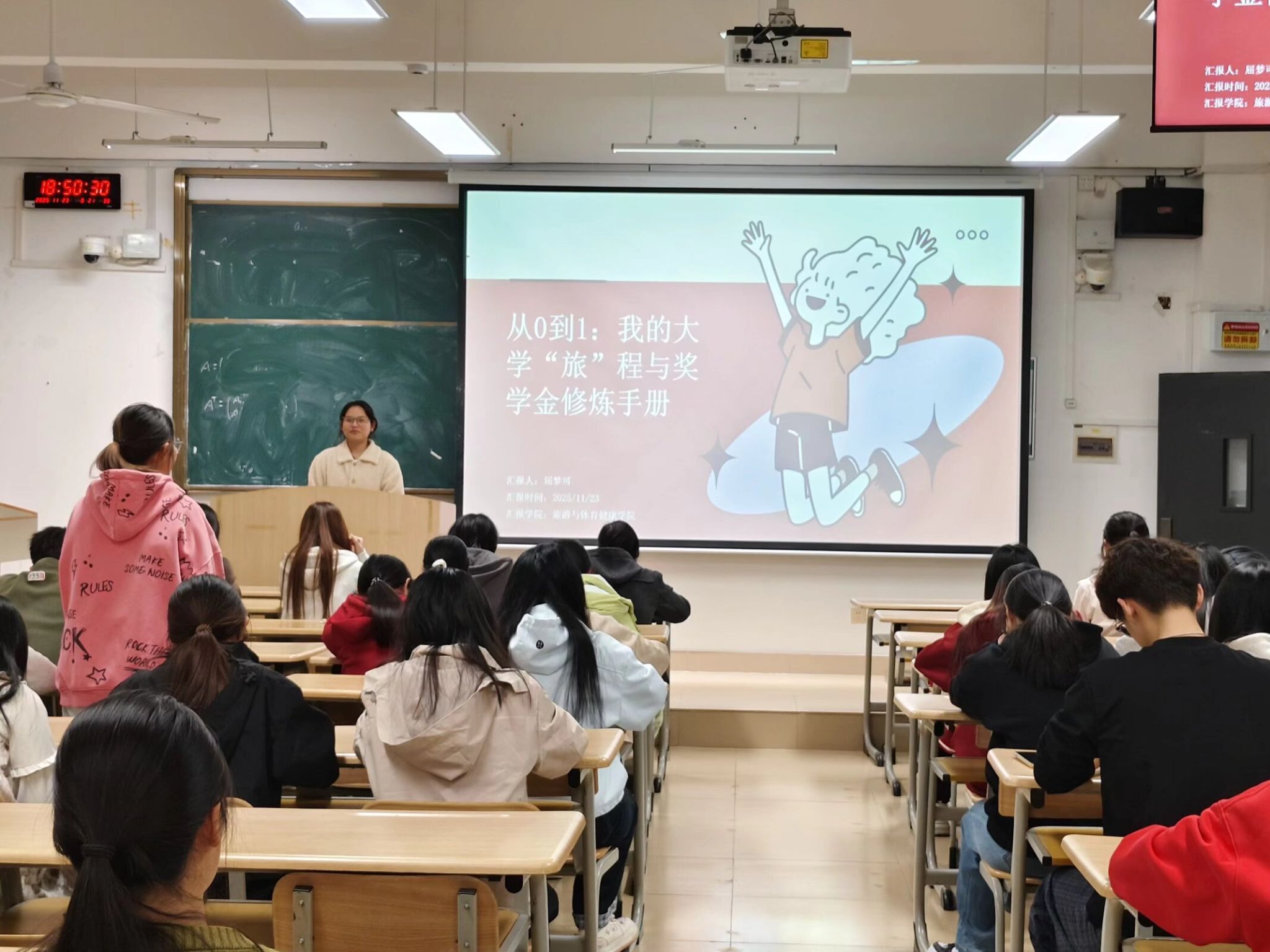 为树立先进典型,发挥榜样力量,营造积极向上的学习氛围,自11月23日起,旅游与体育健康学院启动为期三周的“榜样引领·奋进前行”优秀学生宣讲活动。学院组织2024-2025学年国家奖学金、至善校长奖学金及自治区奖学金获得者,利用晚例会时间深入各专业、各班级开展经验分享。