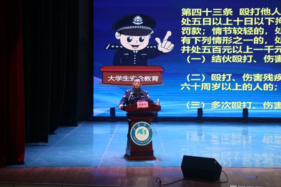 讲座伊始,张辉祥所长结合多年从警经验和丰富的真实案例,强调了大学生法制教育的严峻性与重要性。在讲座中,张所长重点讲解了与大学生密切相关的打架斗殴、电信网络诈骗等违法行为的法律界定与严重后果。他通过解读《中华人民共和国治安管理处罚法》与《中华人民共和国刑法》的相关条款,结合本地高校发生的真实案例,直观展示了“打架成本”和“帮信罪”的沉重代价,让同学们深刻认识到一时冲动可能带来的法律制裁和人生污点。同时,他针对刷单返利、虚假交易、冒充客服等高发诈骗类型进行了深入剖析,详细拆解了骗子的作案手法,为同学们敲响了警钟。