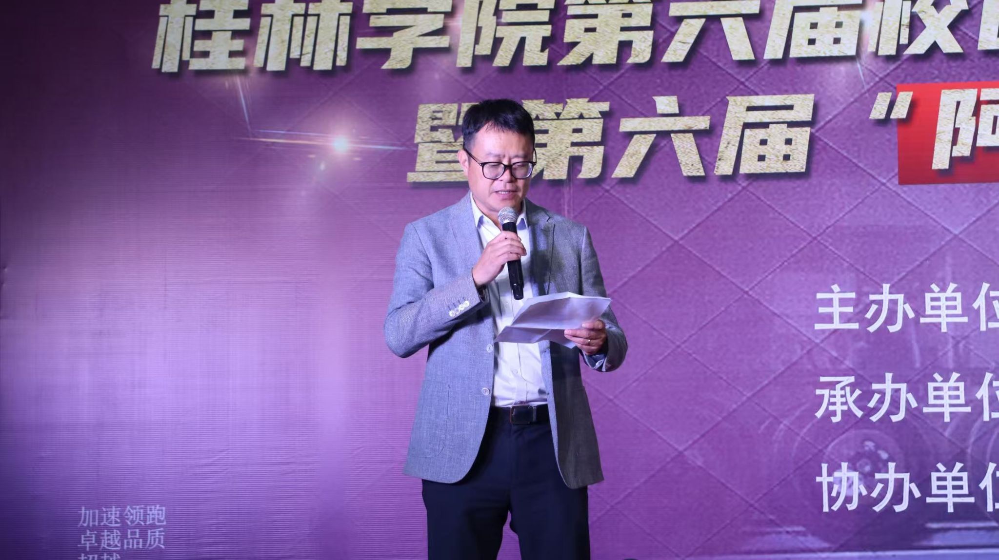 比赛伊始,桂林学院产教融合与创新创业中心主任致辞中,他强调体育是育人工作的重要一环,希望同学们以赛事为平台,展现青春活力,实现全面发展,并对志愿者的辛勤付出表示衷心感谢。
