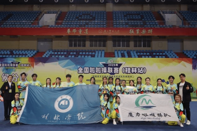 11月8日,2025年全国啦啦操联赛(桂林站)在广西师范大学雁山校区综合体育馆正式开赛,来自各地的参赛队伍齐聚一堂,以灵动舞姿展现啦啦操的独特魅力,用饱满热情诠释运动风采。桂林学院啦啦操代表队、体育舞蹈代表队在赛场中斩获四金一银的优异战绩,为学校增光添彩。