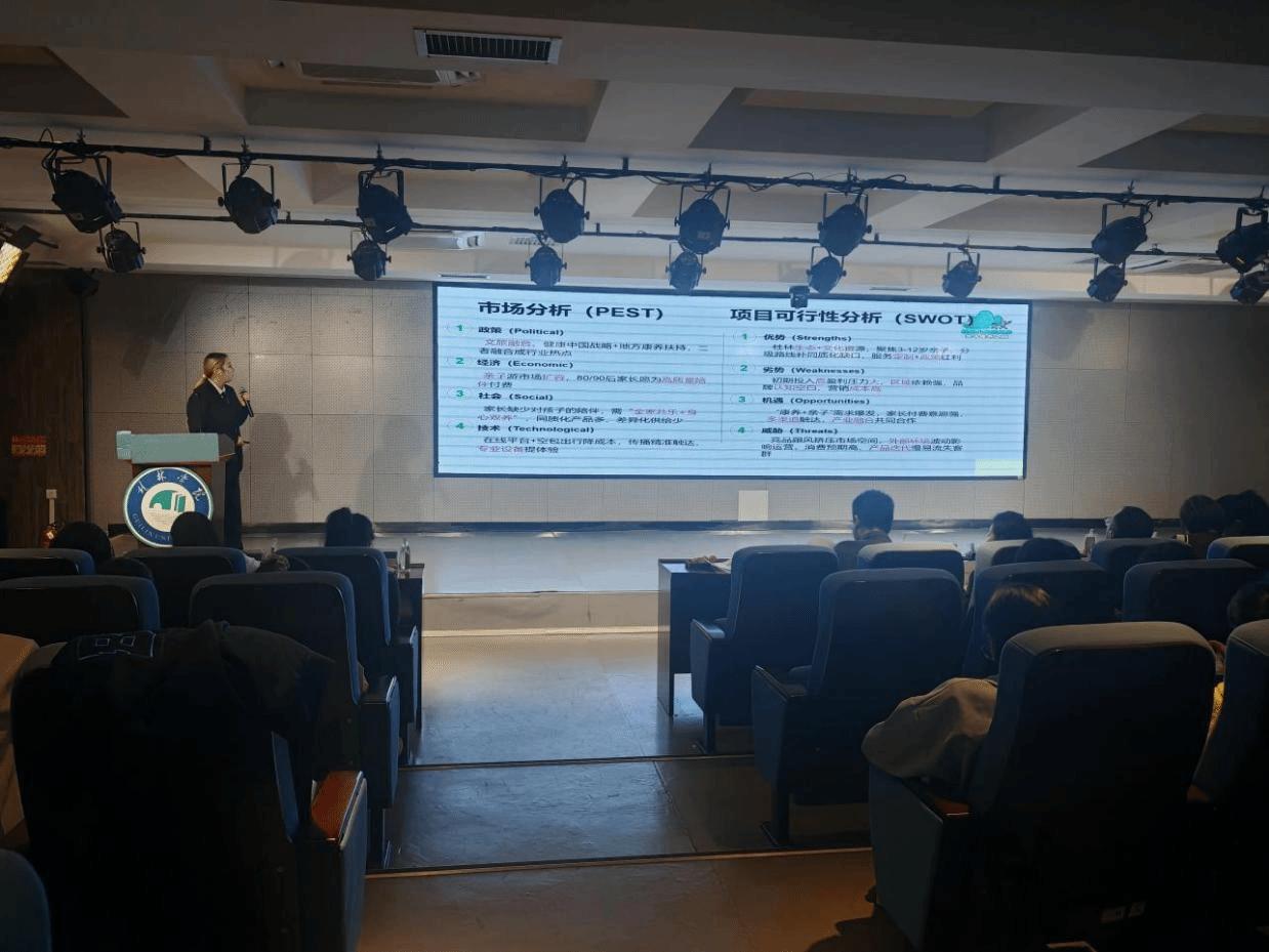 本届大赛吸引了百余名学生组队报名参加,经过初赛遴选,最终六支优秀队伍脱颖而出。决赛采用“8分钟项目陈述+5分钟问答”的评审模式,即8分钟通过现场展示项目内容,主要阐述项目的背景、目标、实施计划以及预期效果,呈现了一系列紧密结合社会需求与地域特色项目的过程。随后进行5分钟的现场答辩,由评委根据项目的目的、创新性、可行性、团队协作及现场表现力等多个维度进行严格评审进行评分。