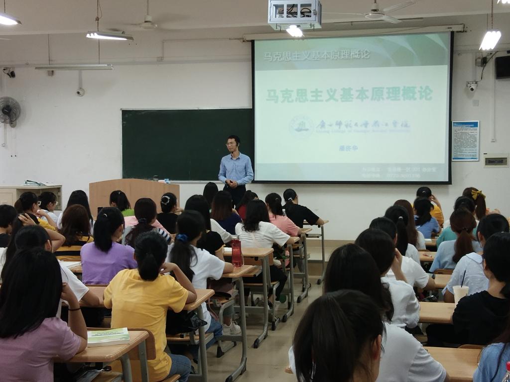 为进一步改进提高“原理课”课堂教学水平,增强“原理课”教学效果,9月11日上午,马克思主义基本原理教研室举行本学期第一次教师公开课。本次公开课由潘济华副教授主讲,马克思主义学院院长张常永,马克思主义学院党支部书记、副院长吴秋燕到现场听课,教研室教师现场听课。