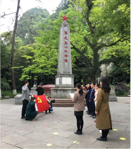支部成员在七星公园陈光烈士纪念塔前瞻仰、重温入党誓词