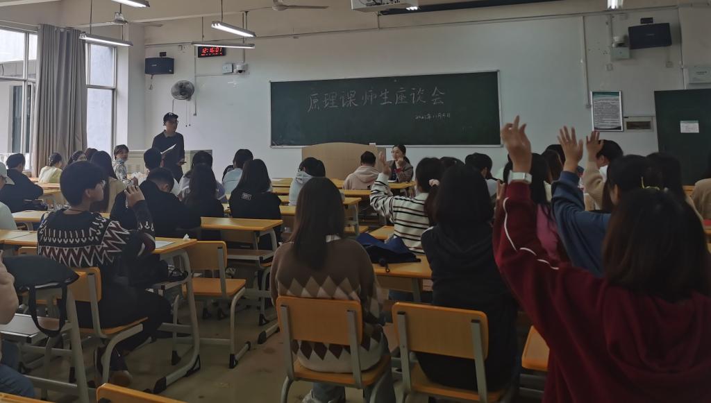 座谈会上,学生们对本学期《原理》课任课老师的教学情况、教学内容、教学方法以及教师授课的优缺点畅所欲言,进行了积极反馈。学生们表示,任课教师授课严谨负责,课堂上师生关系和谐,对任课教师和课堂教学都表示了积极肯定,特别是“原理+新闻10分钟”“原理+时事政治”“原理+习题测试”等形式深受学生们欢迎;同时学生们也认为,课程内容理论性强,希望任课教师授课过程中案例分析更接近学生生活实际,课堂互动更生动,课程教学重难点更明确,进一步课堂教学效果。