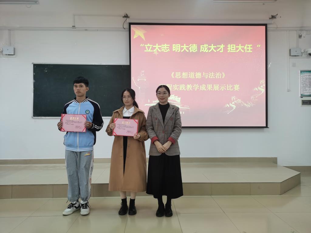 2021年12月10日上午十点,“思想道德与法治”课程“立大志、明大德、成大才、担大任”实践教学成果展示比赛在1316 教室举行,马克思主义学院吴秋燕副院长、后勤保卫处李久华处长、马克思主义学院刘莹、黄巧燕老师担任评委。10 个决赛作品分别为“不负韶华”、“不忘初心,洗心寻梦”、“争做新时代青年应当先付诸行动/先树立思想”、“担大任,有我辈”、“红星闪闪”“小萝卜头”、“中国复兴路,青年担大任”、“炽热少年的热血和青春的诗”、“拥抱春天”、“赵一曼”,各小组通过情景剧、演讲、朗诵、辩论赛等形式进行了精彩展示,内容包括传承红色经典、致敬革命先烈、时代风尚、新时代青年使命担当等,通过近两个小时的现场展示评比,5件作品荣获三等奖,3.件作品荣获二等奖,体育专业莫嘉昌小组和法学专业王冠辉小组荣获一等奖。