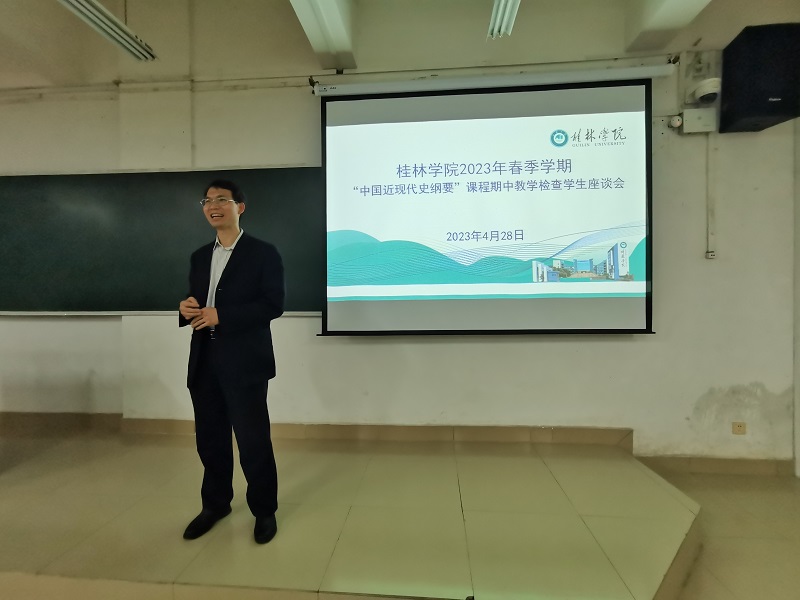 为及时了解“中国近现代史纲要”课教师的教学授课情况,及时把握学生学习情况,进一步提升“中国近现代史纲要”课的教学质量,4月28日中午,马克思主义学院“中国近现代史纲要”教研室在1207教室召开了“中国近现代史纲要”课期中教学检查学生座谈会。座谈会由“中国近现代史纲要”教研室主任潘济华主持。来自不同学院的2022级学生代表近百人参加座谈会。