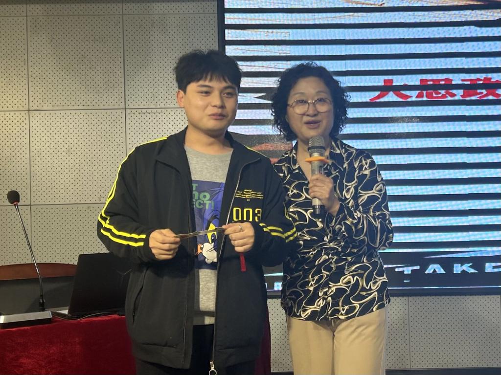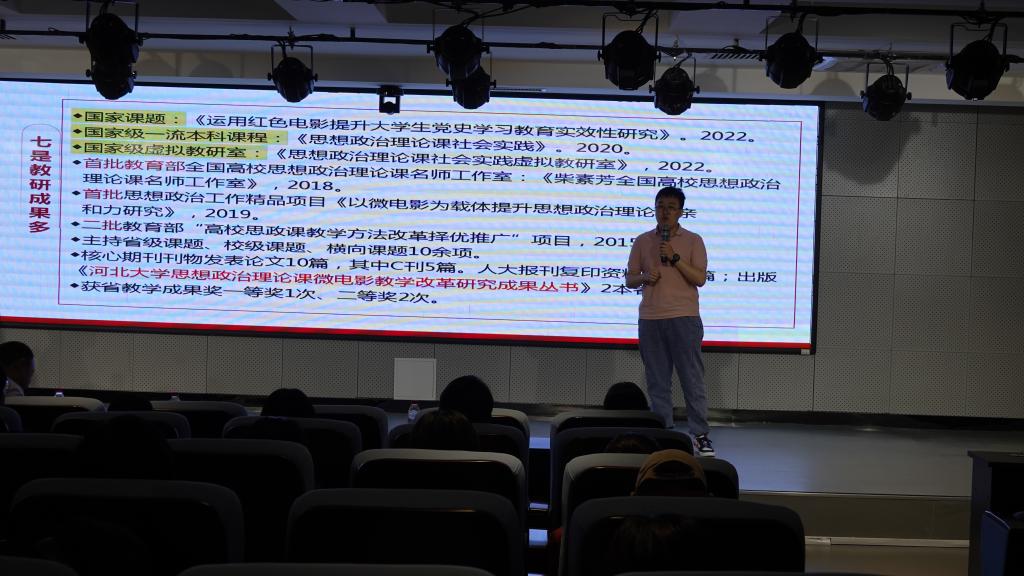 柴教授通过书签抢答游戏进行了预热,在一问一答的热烈轻松氛围下,讲座娓娓道来。柴素芳教授从国家“大思政课”的本质要义出发,以河北大学实践探索为依据,以微电影为媒介例证了思政理论小课堂和社会实践大课堂完美结合的可能性。柴教授分别从开课背景、课程目标、发展历程、教学环节、基本要求等维度分享河北大学微电影实践教学的开设经验,为本科院校思想政治社会实践课的开设提供了完美范例。