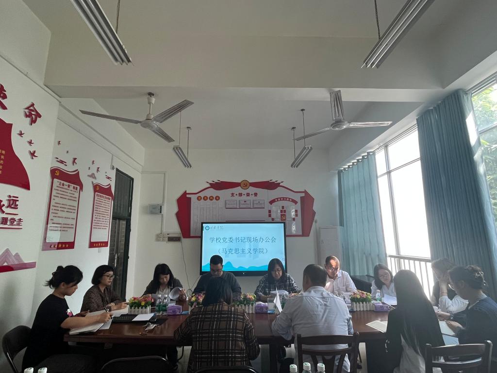 10月31日下午,校党委书记唐文红在学校办公室、党委工作部、教务与产教融合处、学生事务处(部)相关人员陪同下到马克思主义学院开展调研工作,学院院长张常永、副院长贺春先、教师徐玲、苏晓瑞、刘悦参加会议。