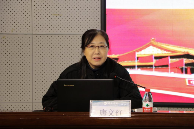 讲座上,唐文红从学习党的二十大报告引入,着重从新时代新方位、新形势新要求、新征程新作为三个方面讲授了如何在党的政治建设统领下书写新时代桂林学院高质量党建新篇章。唐书记提出,新时代标定学校党建工作新方位,新时代赋予学校党建工作新内涵;要从“百年历程”把握历史逻辑、从“两个大局”把握时代方位、从“两个大计”把握教育使命来认清新形势,从辩证把握主要矛盾、聚力扭住短板弱项、坚持树牢风险意识来直面新问题,用对标增强政治性、用对题增强针对性、用对需增强操作性来把握新要求。唐文红强调,要聚焦党对学校的全面领导,写好党建引领桂林学院做大做强文章;聚焦人才强校关键变量,写好人才队伍扩量提质文章;聚焦立德树人根本任务,写好人才培养质量提升文章;聚焦至善精神文化内核,写好为党育人为国育才文章;锚定做大做强建设目标,务实创新,开拓进取,以高质量党建引领学校事业高质量发展,坚定不移担当起办好人民满意大学的使命。