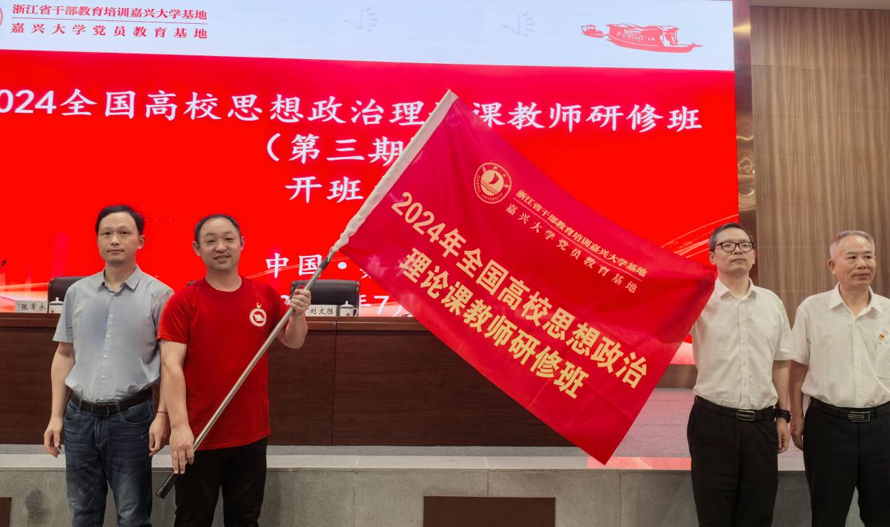 7月23日,马克思主义学院2024年思政课教师暑期实践研学开班仪式在教育部全国高校思想政治理论课教师社会实践研修基地(嘉兴大学)顺利进行,嘉兴大学副校长周宏伟、马克思主义学院院长张常永及思政课教师参加开班仪式,开班仪式由嘉兴大学继续教育学院副院长吴维佳主持。