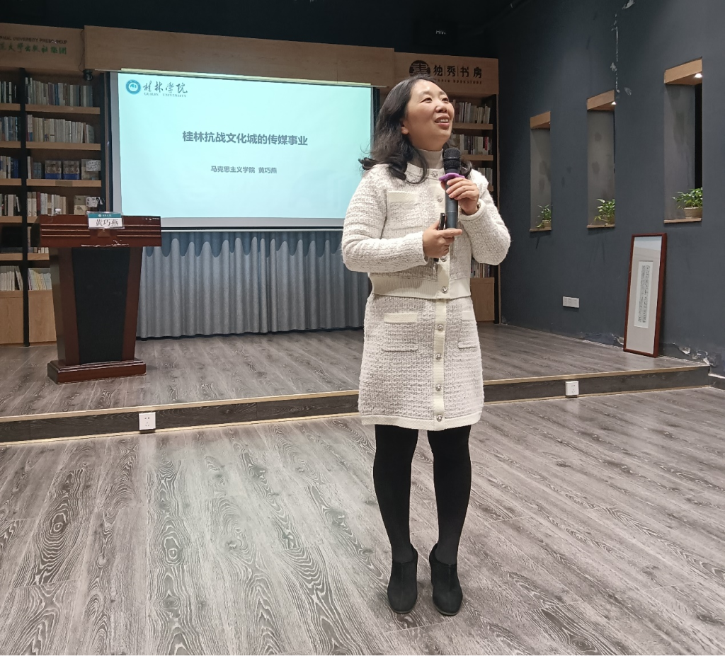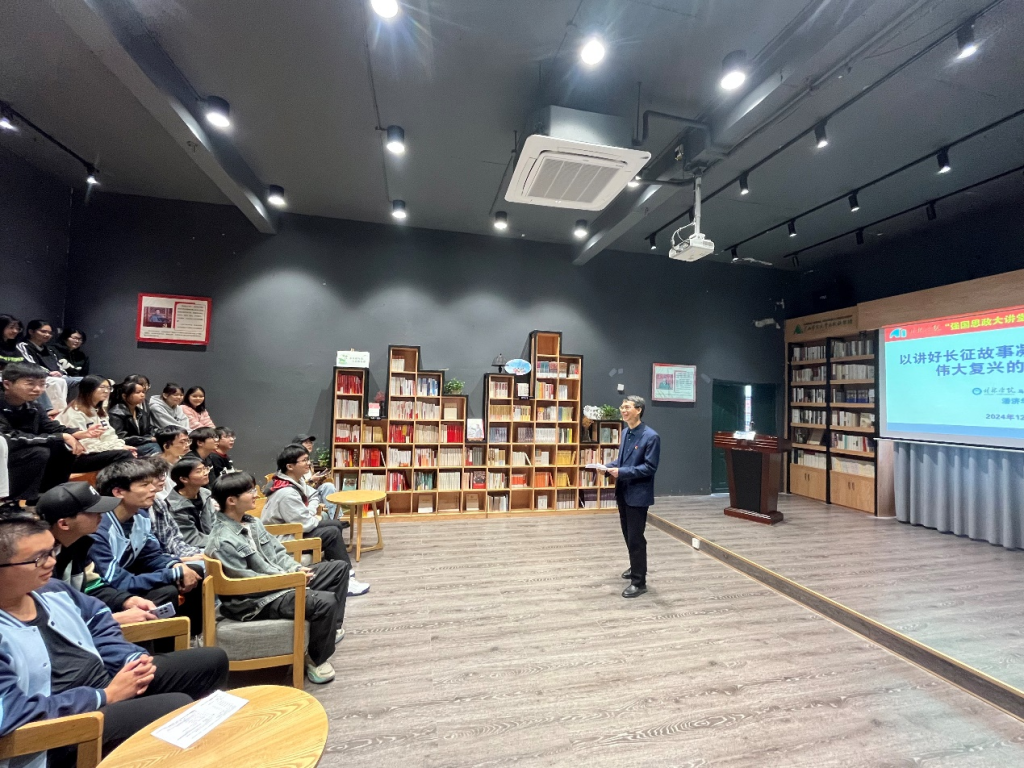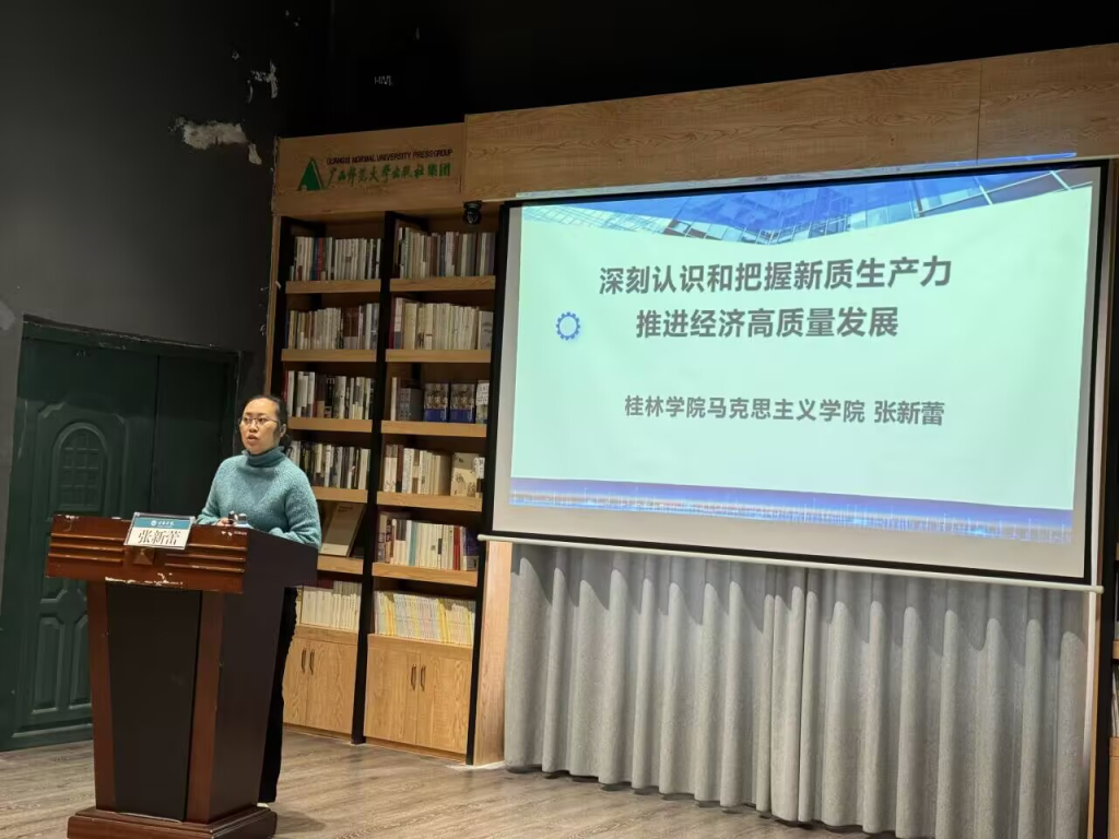 在活动期间,马克思主义学院教师积极参与到“思政大讲堂”系列讲座活动当中,一共开展6场专题讲座。这6场讲座分别是:马克思主义学院院长张常永作题为《在进一步全面深化改革 推进中国式现代化进程中奉献青春力量》的讲座,副院长贺春先作题为《从中国共产党人的精神谱系中汲取青年奋进的力量》的讲座,张新蕾副教授作题为《深刻认识和把握新质生产力 推进经济高质量发展》的讲座,潘济华副教授作题为《以讲好长征故事凝聚起中华民族伟大复兴的精神力量》的讲座,包博雅老师作题为《铸牢中华民族共同体意识在广西的生动实践》的讲座,黄巧燕副教授作题为《桂林抗战文化城的传媒事业》的讲座。