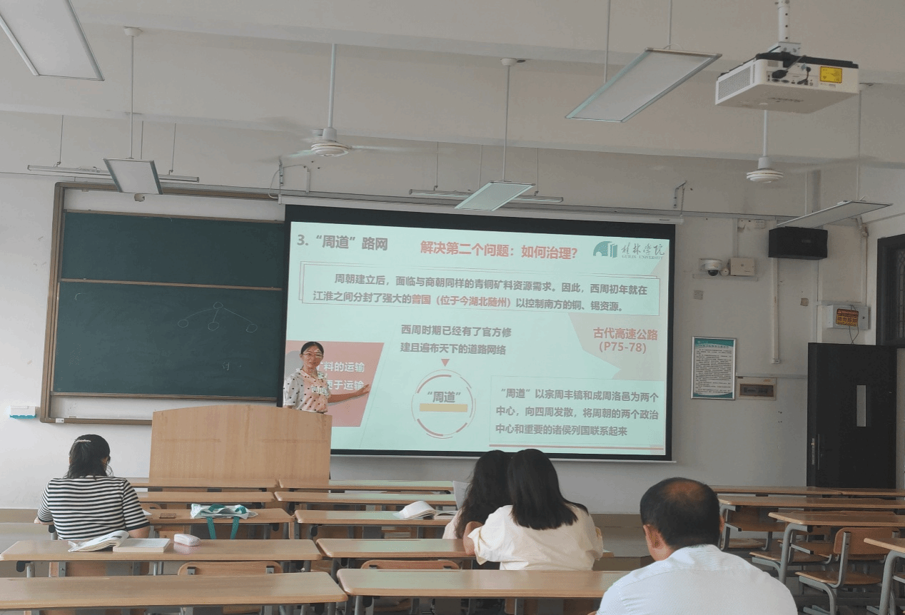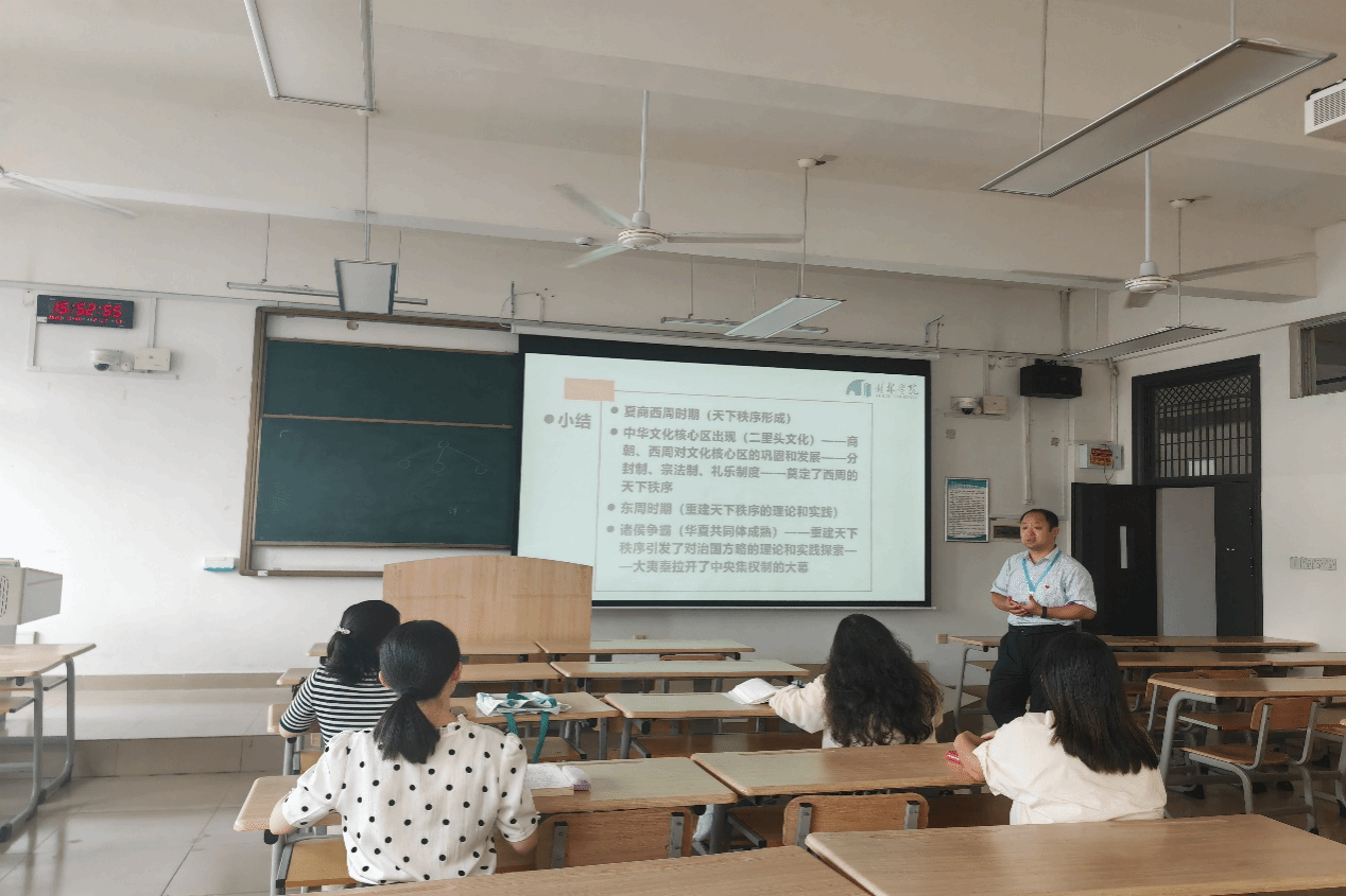 第一阶段教师吴秋燕对第三讲“文明初现与中华民族起源”、第四讲“天下秩序与华夏共同体演进”的教学设计进行了分享,并重点围绕第四讲“华夏共同体的孕育”“华夏共同体的形成”“华夏共同体的发展”三个方面进行课堂教学展示。