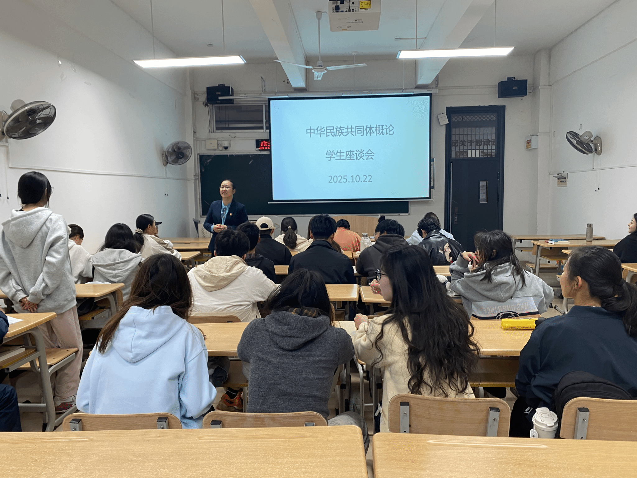 为进一步提高教学质量,了解上课情况,马克思主义学院 “中华民族共同体概论”教研室于10月22日在1201教室召开了“中华民族共同体概论”课程学生座谈会,会议由教研室主任张新蕾老师主持,2025级各专业班级学生代表参加。