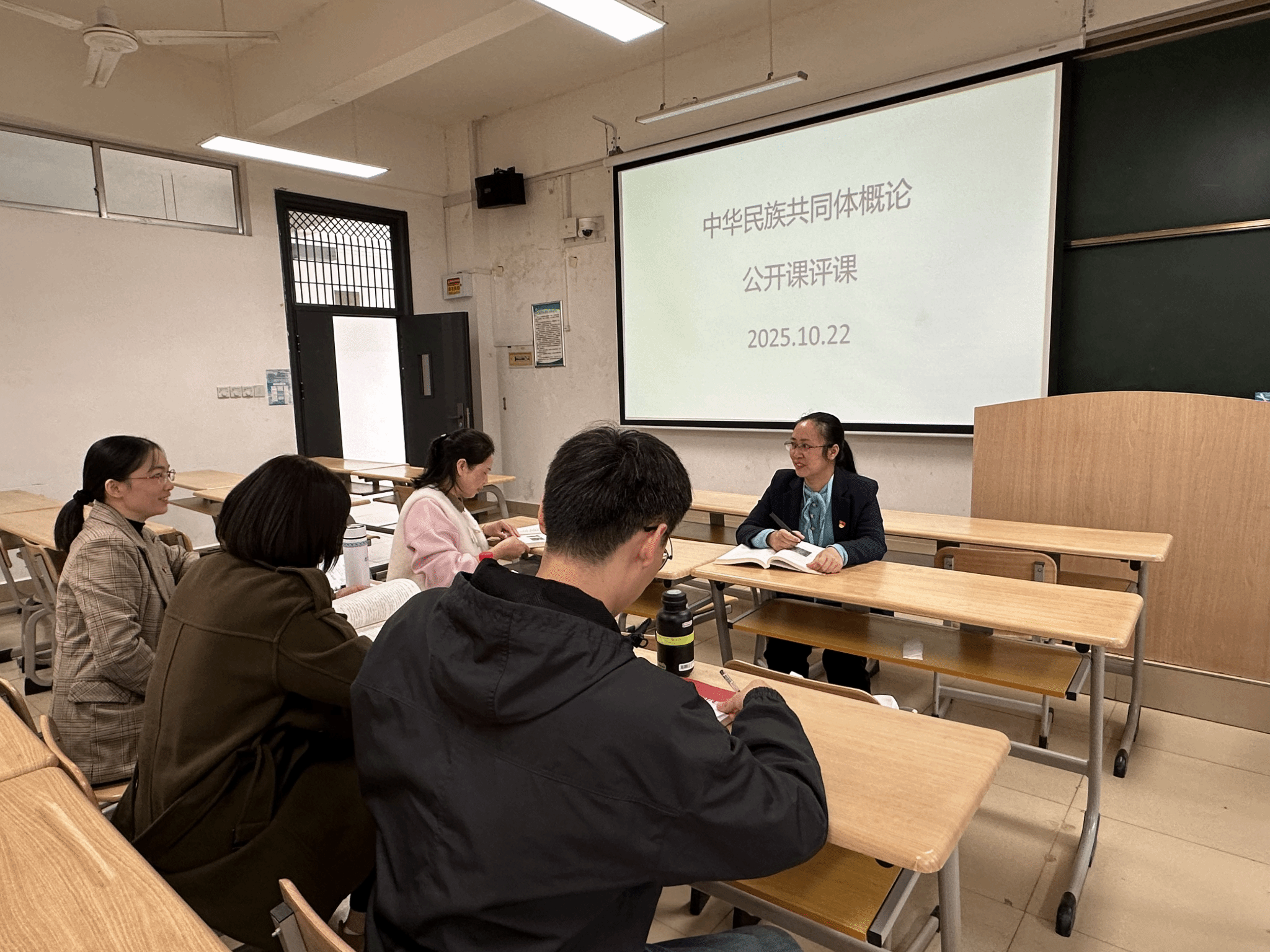 10月22日,中华民族共同体概论教研室开展2025年秋季学期公开课活动,本次公开课由张新蕾主讲,讲授专题为“天下秩序与华夏共同体演进”,教研室教室到现场听课并进行评课。