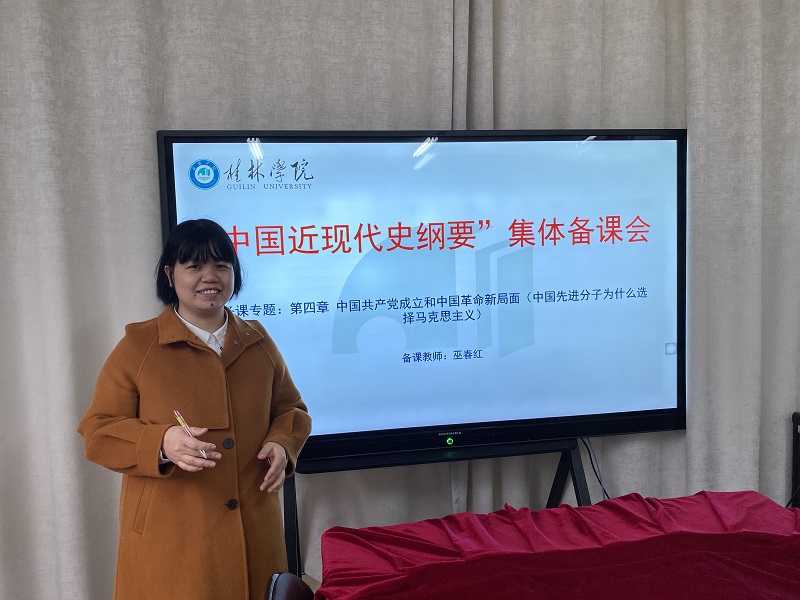 会上,巫春红老师首先对“专题五 中国先进分子为什么选择马克思主义”进行教学设计,从历史和人民怎样选择、为什么选择了马克思主义等方面进行分享,并通过具体的历史事实以引导学生理解历史和人民选择马克思主义是完全正确的,进一步增强接受马克思主义指导的自觉性,得出“马克思主义行,中国化时代化的马克思主义行”的结论,进一步认识历史和人民选择马克思主义的历史必然性。