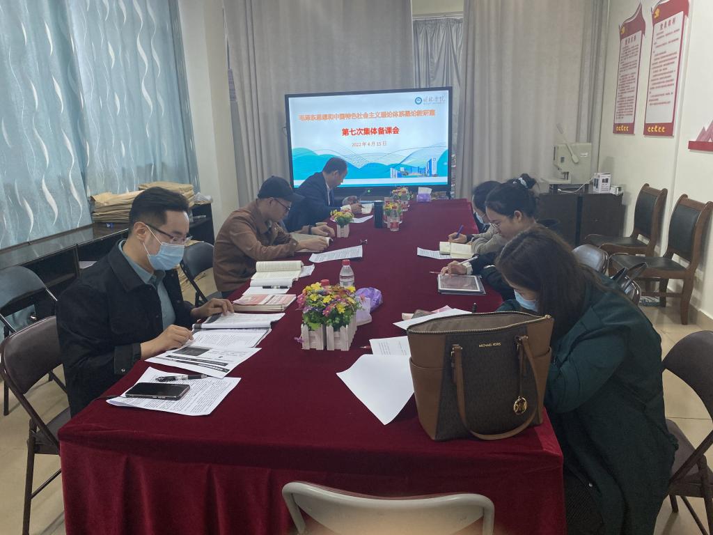 为了持续推进毛泽东思想和中国特色社会主义理论体系概论课的教学质量,4月15日,教研室在马克思主义学院会议室1207开展了本学期的第七次集体备课会。本次会议由教研室主任刘莹主持,全体教研室教师参会。