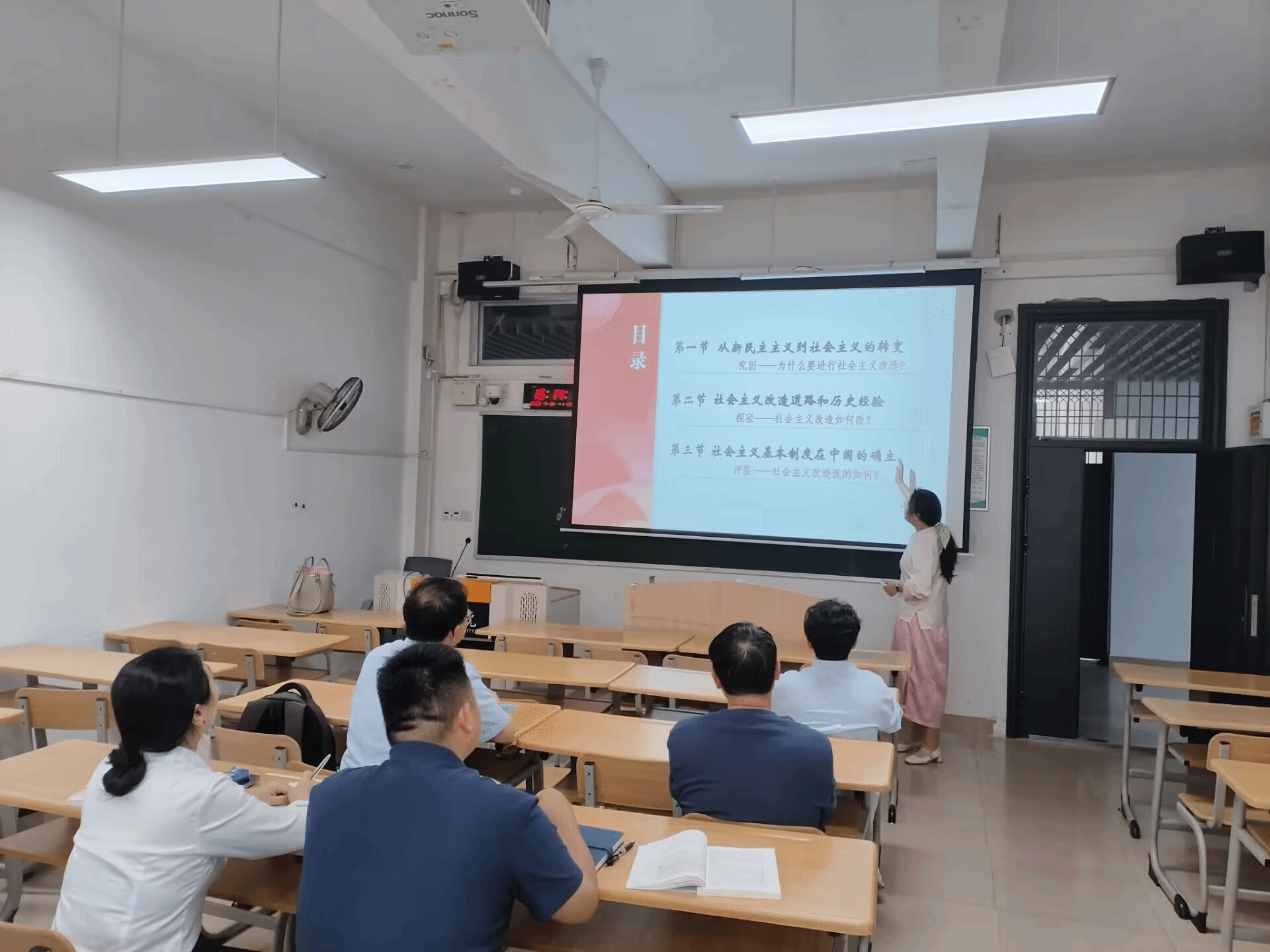 会上,徐玲老师以问题链的形式,围绕三个核心环节梳理了教材第三章“社会主义改造理论”的内容:一是“究因——为什么要进行社会主义改造”,二是“探径——社会主义改造如何改”,三是“评鉴——社会主义改造改得如何”。紧接着徐玲老师以同仁堂作为案例对“对资本主义工商业的社会主义改造”这一知识点进行磨课展示。