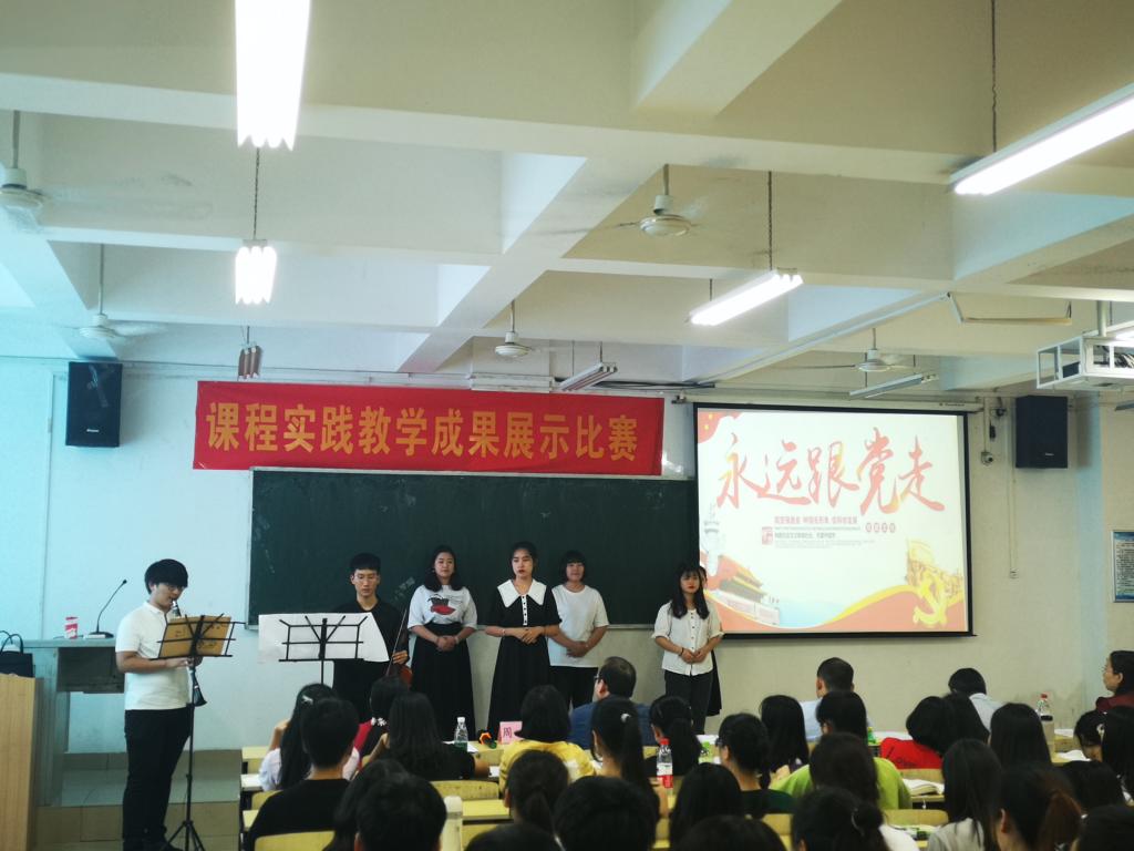 5月23日下午,马克思主义学院在1207教室举行了18级课程主题实践教学成果展示比赛,来自全院不同专业的10个学习小组,展示了他们的实践学习作品,从不同角度以不同的方式呈现了在《马克思主义基本原理概论》课程学习过程中对“马克思主义与中国”这个主题的学习思考结果。