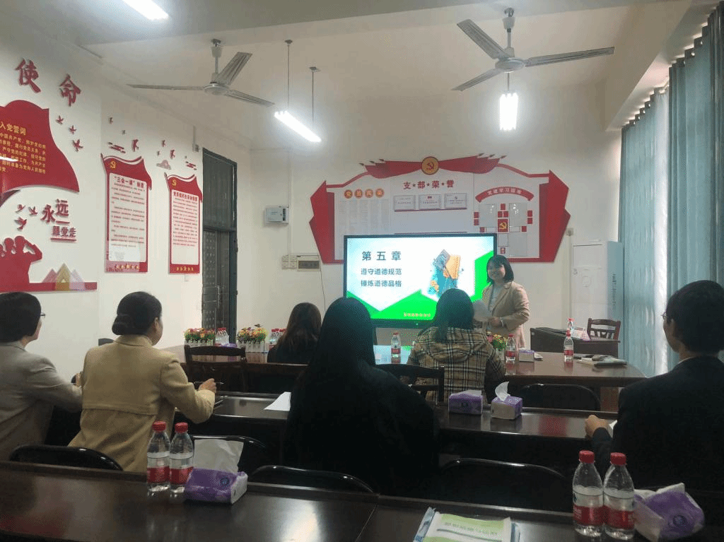 会上,熊银老师对“思想道德与法治”课第五章第一节“社会主义道德的核心与原则”部分作了课堂展示。她首先通过视频导入,引发学生思考“什么是道德”“人为什么需要道德”等问题,进入道德的起源和本质的探讨。接着与学生一起学习道德之于个人、国家和社会的作用,梳理道德的发展规律,明确社会主义道德的先进性。再者通过身边的事例深入浅出地理解社会主义道德核心、原则的科学内涵。通过课堂讲解,帮助大学生理解马克思主义道德观,明白坚持以为人民服务为核心、以集体主义为原则,才能准确把握讲道德、尊道德、守道德的正确方向,不断提升自我道德境界。