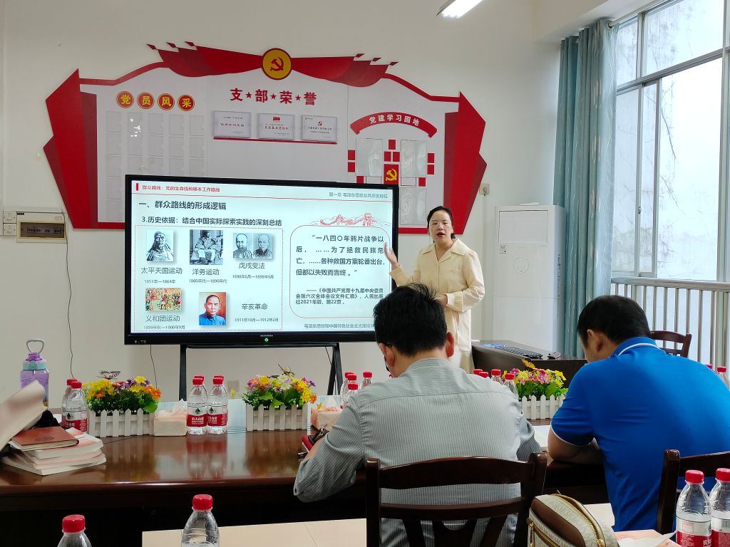 徐玲老师以“群众路线:党的生命线和根本工作路线”为主题进行备课展示,从群众路线的形成逻辑、科学内涵和如何走好新时代群众路线三个方面进行了精彩讲解,运用了淮海战役、“半条棉被”等生动案例,理论与实践相结合,逻辑清晰,教学效果良好;蒙丽珍老师以“马克思主义中国化时代化的内涵”为主题进行了备课展示,通过“湘江战役”视频导入设问的方式引发学生思考马克思主义中国化时代化问题,并引导学生从内涵和实践要求两个层面对这一问题进行了深刻诠释,教学过程中注重调动学生的学习积极性和能动性。韩春兰老师以“新民主主义革命的总路线”为主题进行备课展示,详细分析了中国革命的革命对象、革命动力、革命领导力量、革命性质和革命前途等关键问题,逻辑清晰,内容全面,教学目标达成。