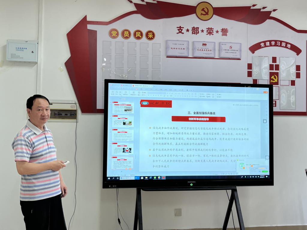 会议第一部分是磨课活动。李会平老师围绕“第十四章第三节加快推进国防和军队现代化”进行了教学展示。李老师从“坚持党对人民军队的绝对领导”“坚持政治建军、改革强军、科技强军、人才强军、依法治军”“全面加强练兵备战”“巩固提高一体化国家战略体系和能力”等方面进行了深入浅出的阐述。随后,与会老师进行了深入交流,对教学设计、教学方法进行了高度认可。此外,还提出了从信息技术的角度优化教学手段。