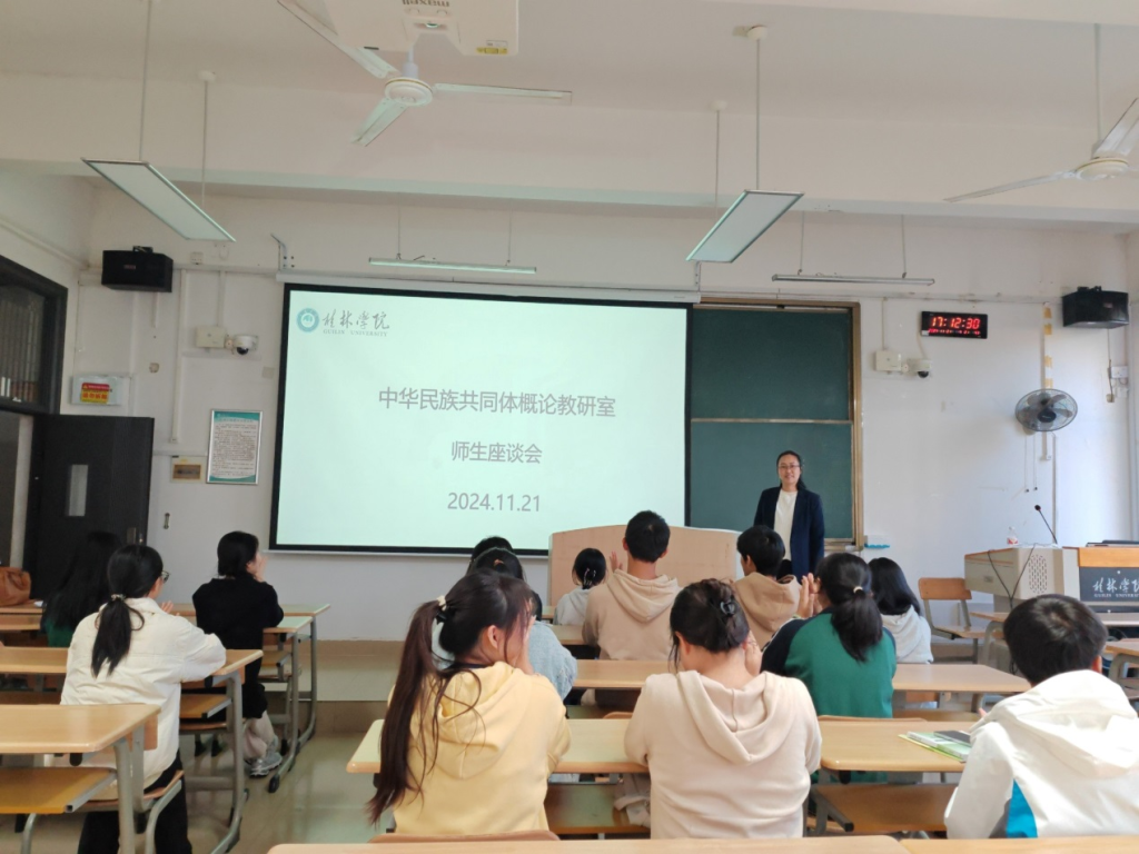 为进一步提高教学质量,提高思想政治理论课教学的针对性和实效性,马克思主义学院 “中华民族共同体概论”教研室于11月21日下午在1309教室召开“中华民族共同体概论”课程师生座谈会,会议由教研室主任张新蕾老师主持,2024级各专业班级学生代表参加。