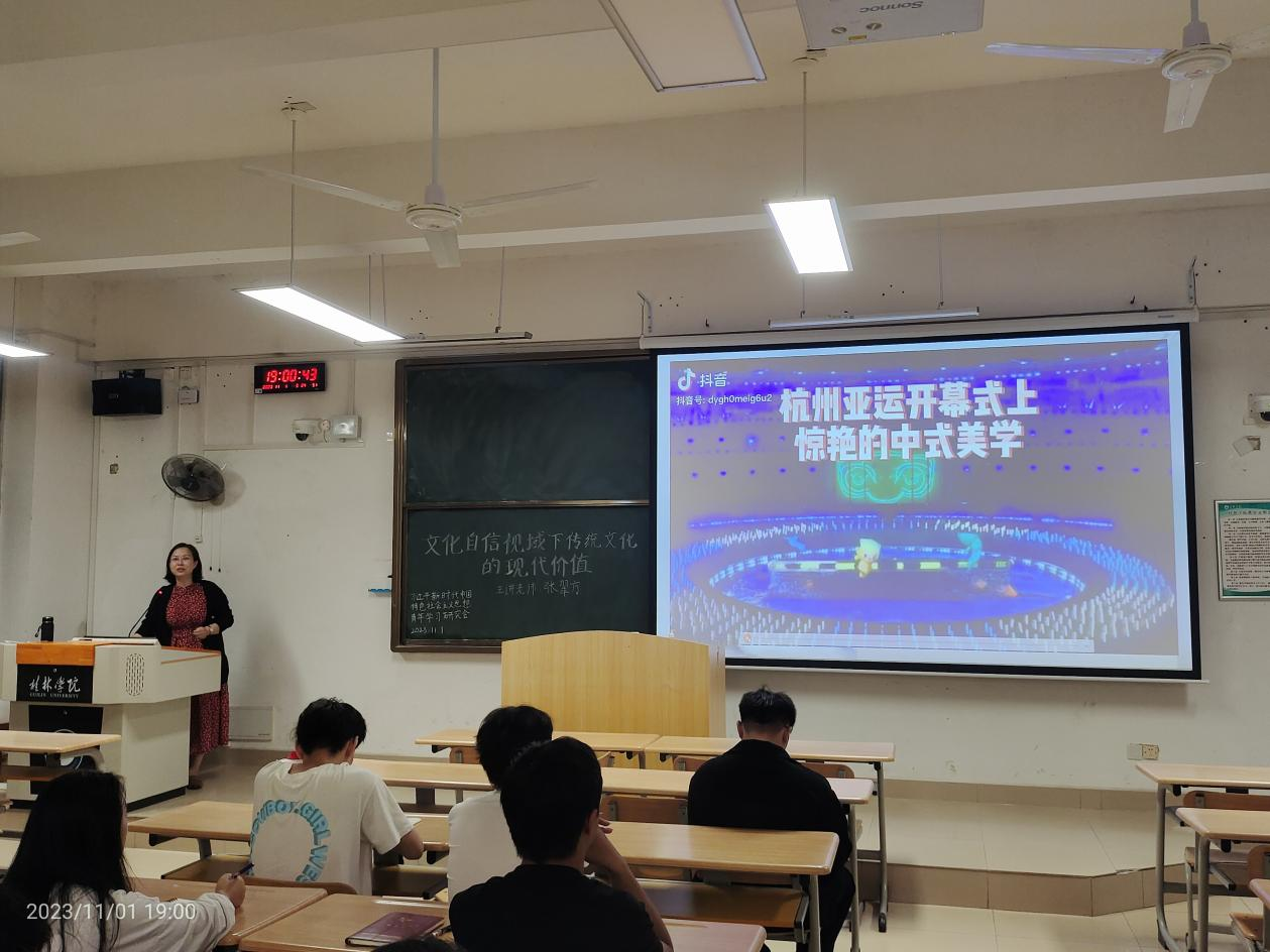 11月1日,习近平新时代中国特色社会主义思想青年学习研究会开展“文化自信视域下中华优秀传统文化的现代价值”主题讲座,主讲人为桂林师范高等专科学校张翠方老师。