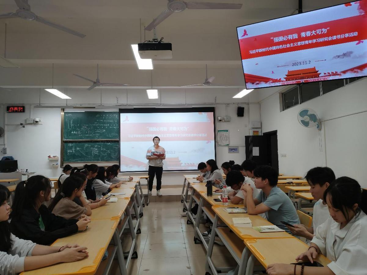 为深入学习贯彻党的二十大精神,营造好读书、读好书、善读书的阅读氛围。11月2日,习近平新时代中国特色社会主义思想青年学习研究会开展“强国必有我,青春大可为”为主题的读书分享会,习近平新时代中国特色社会主义思想青年学习研究会指导老师孙朵和青年学习会成员参加了此次读书分享活动。活动分为学生分享自己的读书心得和教师分享总结两个环节。