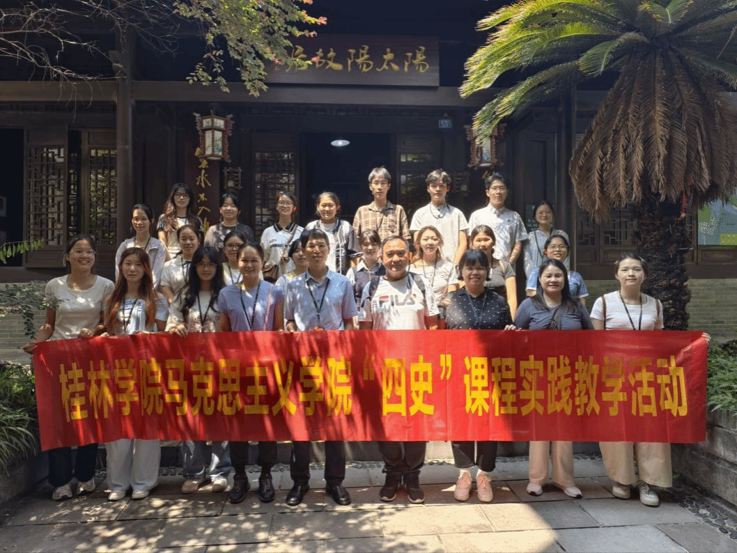 为了培植学生对中国特色社会主义道路的政治认同、情感归属与使命自觉,近日,“中共党史”和“改革开放史”课程实践团队,师生一行赴桂林博物馆、芦笛三村、和记农庄开展了一场以“鉴往知来,知行合一”为主题的实践活动,探寻桂林的抗战文化、改革历程与乡村振兴。
