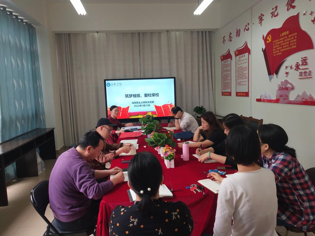 5月25日下午,马克思主义学院党支部开展“筑梦桂院 爱校荣校”主题党日活动。学院党支部书记吴秋燕主持会议,学院教师党员参加。