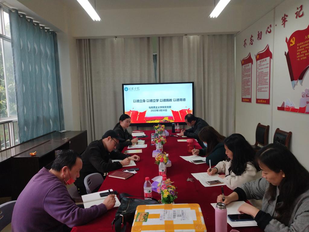 3月30日下午,马克思主义学院党支部在学院会议室开展“以德立身、以德立学、以德施教、以德育德”为主题的“党员活动日”活动,学院支部书记吴秋燕主持本次党日活动,学院党员教师参加活动。