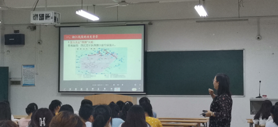 5月13日上午,马院党支部在1401教室开展党史学习教育暨中国近现代史纲要课教学公开课活动。本次活动主题是“湘江战役:革命理想高于天——中国共产党为什么能?”本次活动由张翠方老师主讲,张常永院长、巫春红老师、冯娟老师等到场听课。