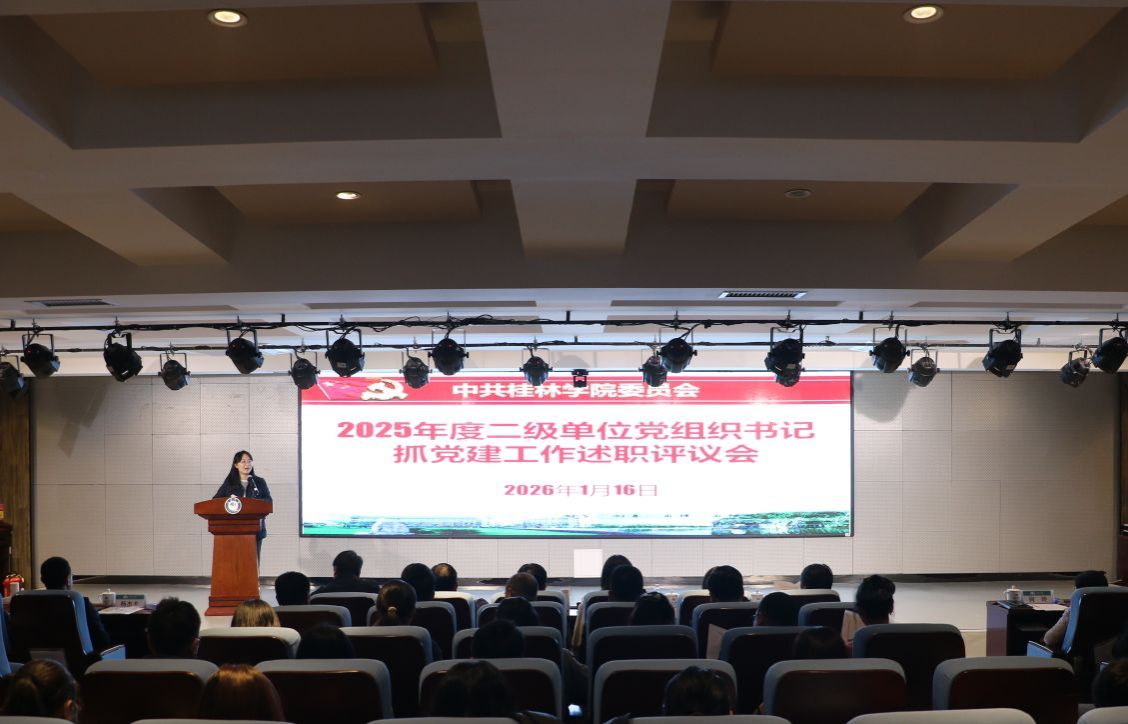 1月16日上午,学校党委在至善讲堂召开2025年度二级单位党组织书记抓党建工作述职评议会暨“党旗领航 铸魂育人”先锋行动“双融双促”优秀案例展评会,学校领导唐文红、康庚莲、杨庆庆、何玲、蒋毅,监事会主席粟义春,财务总监高丽娜出席会议;桂林市委教育工委组织部莫杰列席指导;校党委委员、各党总支书记、副书记、组织员、全体党支部书记和党代会代表参加会议。会议由党委组织部部长主持。