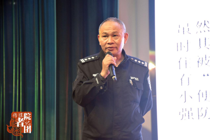 桂林市雁山分局副处周超明在和同学们讲有关防诈骗知识
