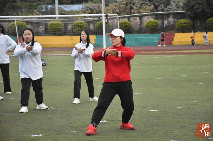 太极拳项目中,王思涵老师向同学们示范动作