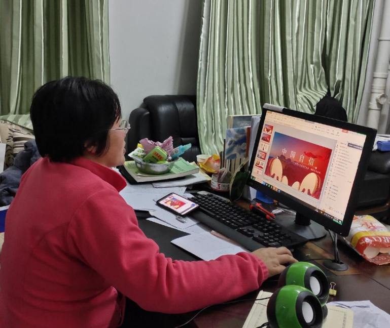 党支部书记周俊巧通过线上会议与党支部的同学们共同学习